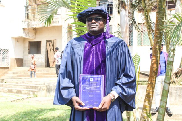 Yvan Fotso also confirmed the temporal dynamics of permethrin resistance, as well as the expression of certain metabolic genes, which seems to be closely linked to seasonal anthropic activities favouring a selection pressure exerted on these malaria vectors at their breeding sites. In 45 minutes, the candidate presented a relevant summary of his work. He answered the jury’s questions satisfactorily. After deliberation, the jury decided to award Mr Fotso Toguem Yvan Gaétan the title of Doctor/Ph.D. in Biology of Animal Organisms, with a specialization in Parasitology and Ecology. For background, Dr. Yvan Fotso Toguem was one of the four Ph.D students selected within the Partnership for Increasing the Impact of Vector Control ( PIIVeC ) Programme, and mentored by Dr. Billy Tene. He was enrolled as a Ph.D student in Animal Biology, at the University of Yaoundé I (UYI) under the supervision of Prof Charles Wondji from Liverpool School of Tropical Medicine ( LSTM) and Prof Flobert Njiokou from UYI. This achievement marks the beginning of his career as a researcher in vector biology and genetics, with a focus on contributing to malaria elimination efforts in Cameroon and Africa.