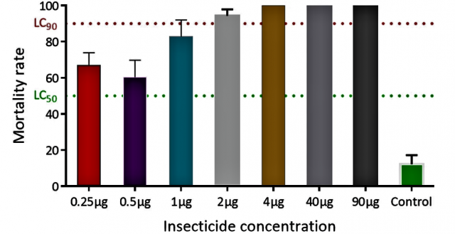 Dr Tchouakui and team observed that Clothianidin induces very low mortality of mosquitoes when using absolute ethanol or acetone alone as solvent. At the end of the study, they recommend monitoring the susceptibility to clothianidin using acetone + MERO at the dose of 4ug/ml.