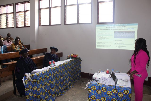 The results of this four years study, conducted as part of Dr. Aurelie Yougang’s doctoral thesis, show that the resistance profile of Aedes aegypti and Aedes albopictus varies considerably depending on the insecticides, the species and the origin of the samples tested. Generally, adult bioassays revealed resistance to permethrin 0.25%, deltamethrin 0.05%, bendiocarb 0.1%, propoxur 0.1% and DDT 4% in both species. However, full sensitivity was observed in all samples tested to fenitrothion. On the other hand, partial or complete restoration of resistance after pre-exposure of mosquitoes to the synergists piperonyl butoxide (PBO) and diethyl maleate (DEM) suggests the involvement of cytochrome P450 monooxygenases and glutathione-s-s transferases in metabolic resistance of these samples. The CYP6P12 gene was found to be significantly overexpressed in samples of Ae. albopictus from Bertoua and Bafang. Contrary to Ae. Aegypti, none of the genes tested were significantly expressed. Nevertheless, the F1534C mutation was detected in populations of Ae. aegypti from Edea and Douala. The low frequency of this mutation suggests a recent introduction of this mutation into the population of Ae. aegypti from Cameroon.