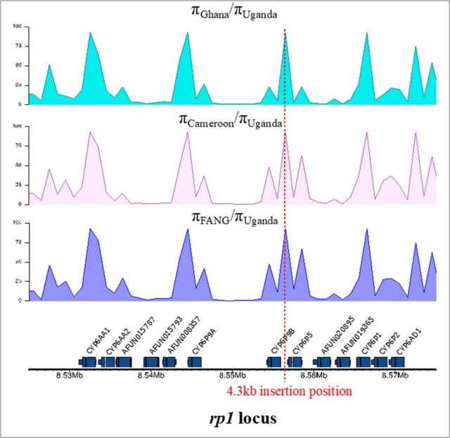 PUBLICATION: Association of a rapidly selected 4.3kb transposon-containing structural variation with a P450-based resistance to pyrethroids in the African malaria vector Anopheles funestus By Leon Mugenzi, Theophelix Tekoh and al